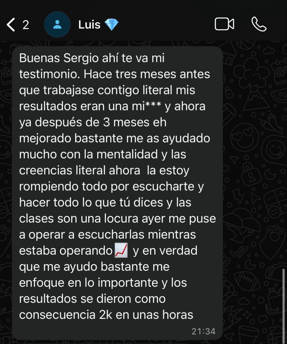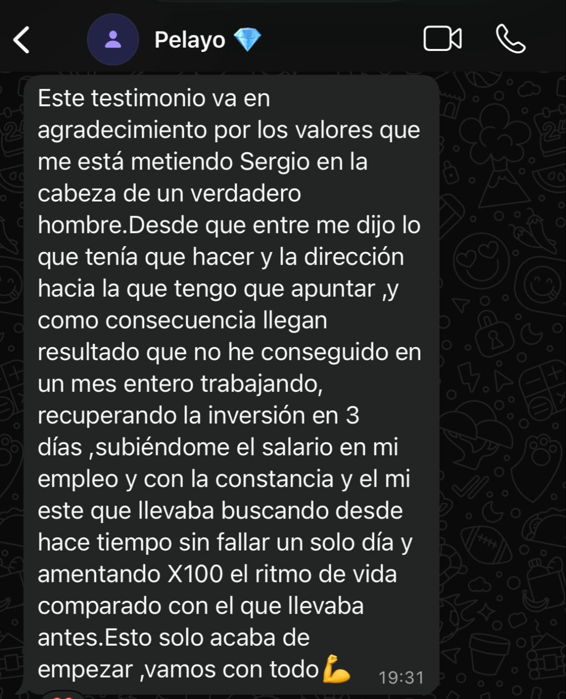 ✅ MENTORIAS EN AUDIO Y CHAT DIARIA CON SERGIO EN EL GRUPO PRIVADO (VALOR 1.500€)
